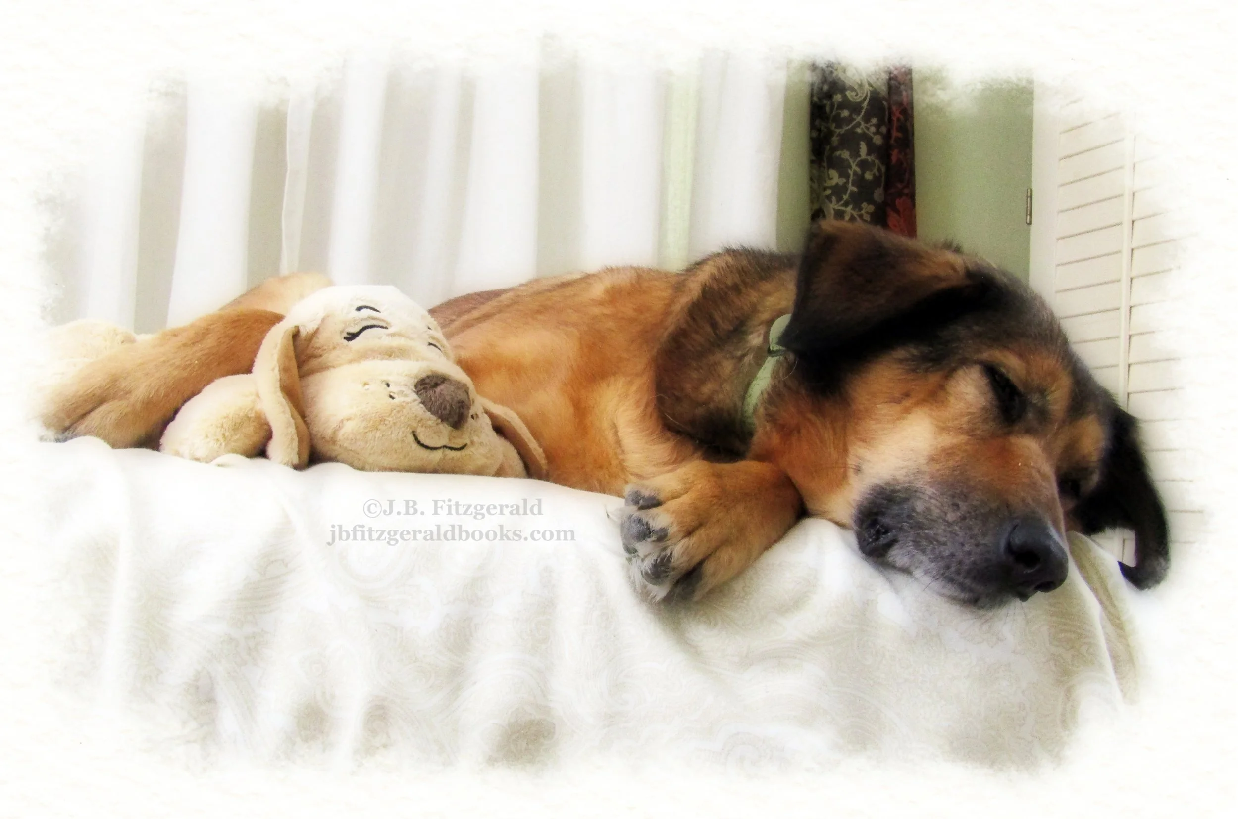 Maisie is a little spoiled, it’s true, and the word "little" is probably wholly inaccurate. She sleeps in my bed and has double-stacked orthopedic dog mattresses on both floors of our home, as well as a canopied bed for the yard. She has a raised diner for her bowls, enough toys to fill a small warehouse, two parents who dote on her as if she were royalty, and a selection of organic, human-grade meals and treats that would make a Michelin-star restaurant look like a hole in the wall. She will also have her own air conditioner soon to keep her cool at night, and, to replace what has become notably faded and tatty over five years, a velvety soft collar imported from the UK because we could no longer find the ultra-soft, lined hemp collars we used to buy for all our dogs here. (Only the best for our girl.) Now she has the calming benefit of another heartbeat too, but if Hugsy provides her additional comfort and reassurance when she is stressed, sick, or frightened, then he will have been worth every penny. Even if he doesn’t, there’s no denying they make a darling pair.